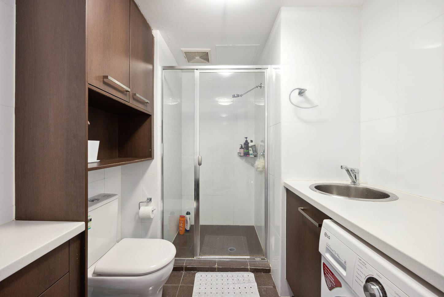 * Fully tiled bathroom with laundry facilities and generous storage