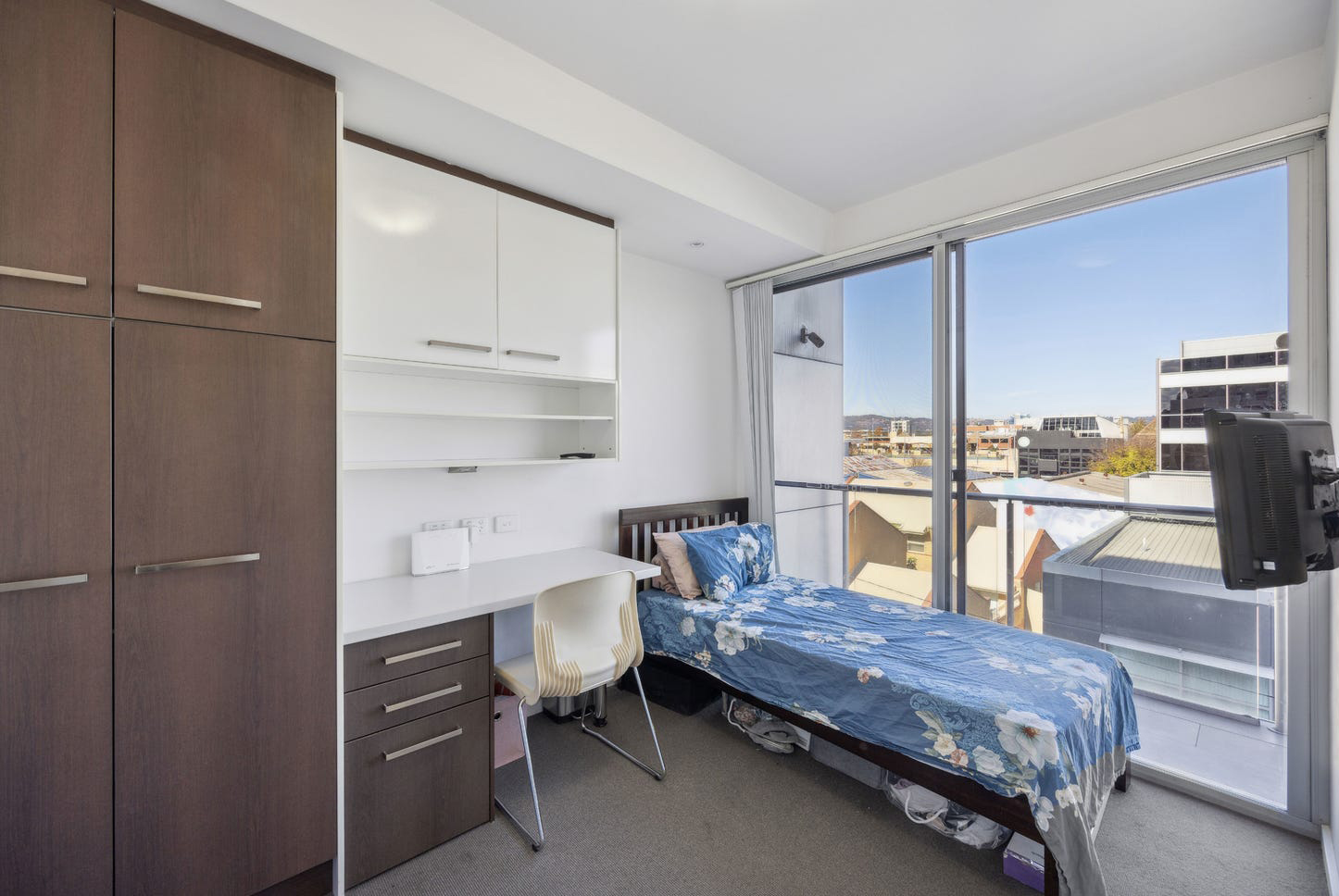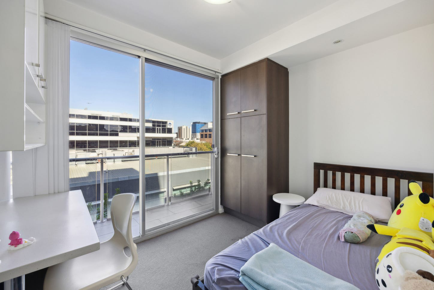 Cleverly designed with abundant storage, the interior design is tasteful and timeless with prioritised functionality. Both bedrooms feature built-in robes, desks, shelving, and storage, creating excellent study zones or work-from-home spaces. Carpets for cosy warmth and balconies with sweeping cityscape outlooks make these beautifully light and airy bedrooms fabulous places in which to sleep, study, work, and relax.
