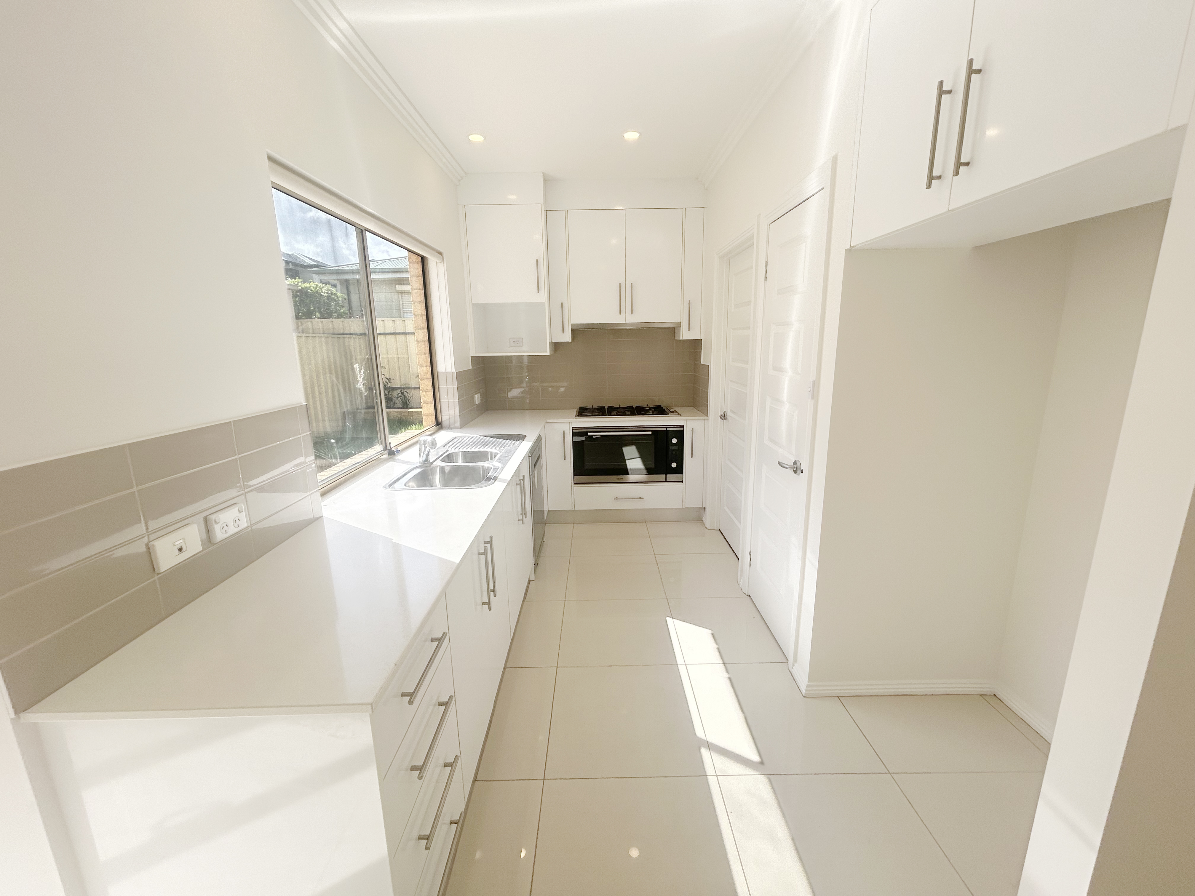 * The light-filled designer kitchen features stone tops, loads of cabinetry, and 900mm appliances with a five-burner cooktop.