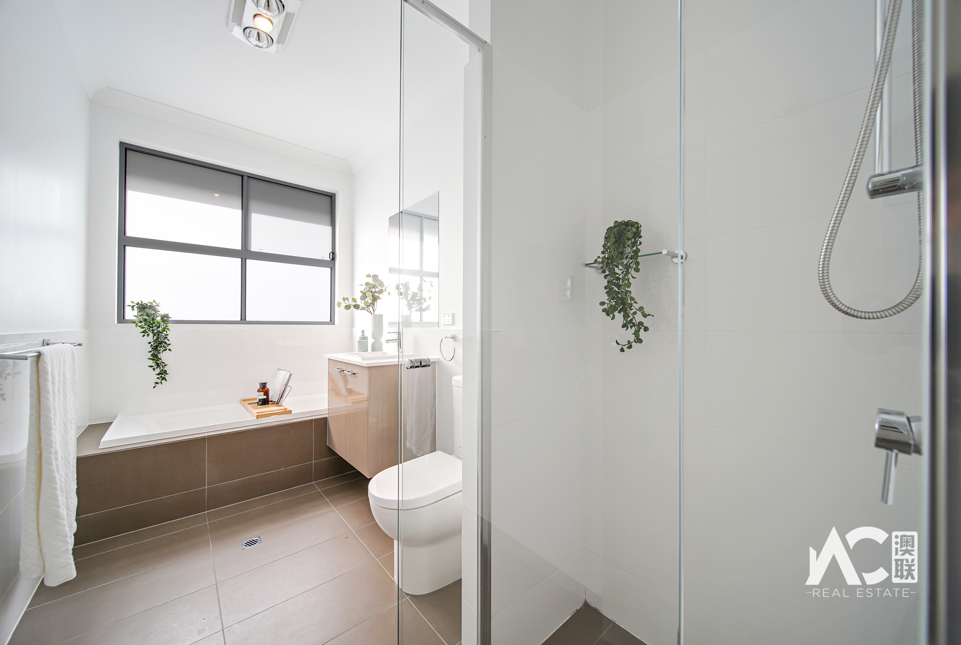 * The spacious bathrooms are immaculate with high gloss wall tiles, modern cabinetry, quality fixtures, and sleek tapware.